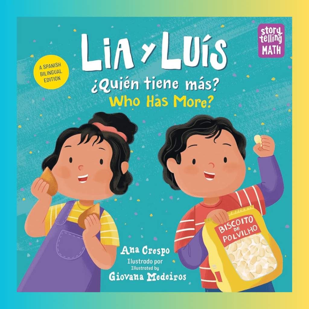 | 3. “Lia y Luís: ¿Quién tiene más? / Lia & Luis: Who Has More?” by Ana Crespo | Measurement and quantity | Comparing snacks and their containers. |